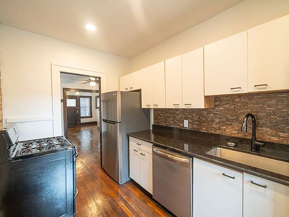 Double french doorsGorgeous wood floorsGranite counter topsStainless steel appliancesWonderful and roomy spaceNewly renovated kitchenDecorative ornamental fireplace