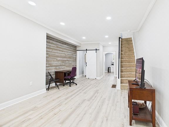 Nestled in the charming Point Breeze neighborhood, this beautifully constructed townhouse offers a perfect blend of traditional elegance and modern comfort. Built in 1925, this new construction has been meticulously completed, ensuring a move-in ready experience for its future owners. Step inside to discover an inviting open floor plan that seamlessly connects the dining and living areas, perfect for entertaining or cozy evenings at home. The space is adorned with crown moldings and recessed lighting, creating a warm ambiance throughout. The upgraded countertops in the kitchen area provide both style and functionality, making meal preparation a delight. The thoughtfully designed bathroom features a tub shower, offering a serene retreat for relaxation. Ceiling fans enhance the comfort of the living spaces, ensuring a pleasant atmosphere year-round. With a total of 972 finished square feet, this home is designed to maximize space while maintaining a cozy feel. The unfinished basement presents an exciting opportunity for customization, whether you envision a home gym, additional storage, or a creative workspace. While parking is not included, the vibrant neighborhood offers easy access to local amenities and transportation options. This property is not just a house; it's a place to create lasting memories. Experience the charm and potential of this Point Breeze gem, where comfort meets convenience in a welcoming community.