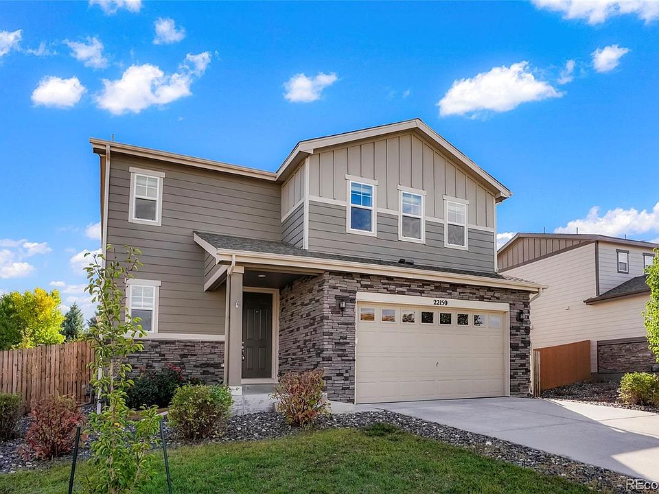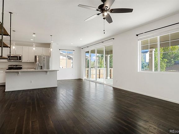 This very appealing traditional in East Quincy Highlands is sure to impress. Enjoy open concept living in the main living room space with warm dark wood flooring and custom built in shelves. The chef's kitchen with gas range, plenty of cabinet space, and a large island. The kitchen opens up to a sun-filled dining area leading to an expansive covered rear patio area with gas valve for summer barbecues. The lush yard is well maintained, completely fence, and includes a vegetable planter area. Convenience is paramount with a powder room on the main level and direct garage access. On the upper level the large light filled oft area serves as an ideal second living room space or spacious office. The primary suite is spacious and includes a walk in-closet and a spa like bath. Two secondary bedrooms and a full bathroom complete this level. This beautiful home is ideally located in Quincy Highlands, was built by Richmond Homes, and includes solar panels to cut down on those pesky utility bills. Enjoy the ease of access to E-470 for commutes or Airport travel and close proximity to shopping. Rest assured this wonderful home feeds into the Cherry Creek 5 School District.