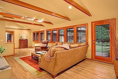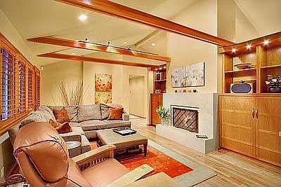 Spectacular remodel with no detail overlooked from gleaming hardwood flrs, soaring vaulted & beamed ceilings, wonderful open floor plan perfect for entertaining. Numerous sets of glass French doors open out to lush gardens and patio-totally fenced for complete privacy. Gourmet kitchen w/ family rm, lavish master suite w/ two custom closets and marble bathroom plus 3 addl. brs and 2 bths. Wonderful outdoor living with built-in fireplace...perfect for entertaining. You will love this!