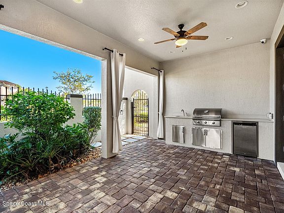 A standout in Viera's sought-after Reeling Park neighborhood, this spectacular 4/5 former model offers over $200K in contemporary upgrades and luxurious living spaces. As you enter through the foyer and pass the office, you're greeted by bright open spaces that draw in soft natural light through the glass front door and windows in the main living spaces. Family gatherings and quiet relaxation are a breeze in the main living space, featuring an electric fireplace and views to the courtyard. The modern kitchen features stainless steel appliances, gas cooktop, vented hood, white cabinetry, quartz counters, and a walk-in pantry. Step outside through the French doors to find a breezy, covered retreat equipped with paver flooring and a summer kitchen, perfect for summertime entertaining. The first-floor primary suite includes an incredible walk-in closet and a spa-like ensuite bathroom with glass and tile shower and soaking tub. . Upstairs, enjoy function and flexibility SEE ''MORE'' with three additional bedrooms that can easily be used as workspaces, home gyms, or a bonus room. You'll find plentiful storage options throughout. A generous 2-car garage with epoxy floors offers room for all the toys. Viera carefree living is waiting for you.