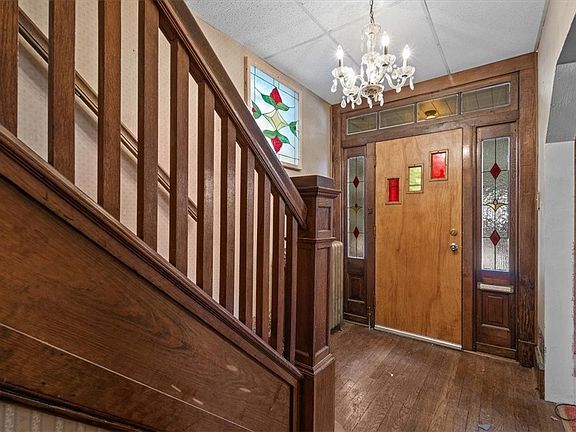 This solid brick home is a true beauty, with a superb location. The large covered front porch invites you into this home. The entryway and original hardwoods create a perfect welcoming spot, then flow into the oversized living room, and onto the separate formal dining room with built-ins. From the kitchen you have additional storage or a possible pantry area, or you can exit to the backyard. In the basement of the home, you will find lots of storage, plus a laundry area, and an additional toilet and shower. Upstairs you will find 3 nicely sized bedrooms, and a full bathroom. The blacktop driveway, tons of parking, and oversized 2 car garage is not to be missed. Make this home yours, or a great investment property.