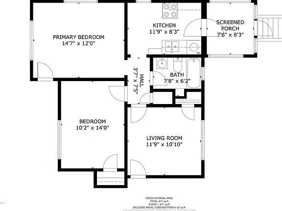 - Total interior livable area: 671 sqft
