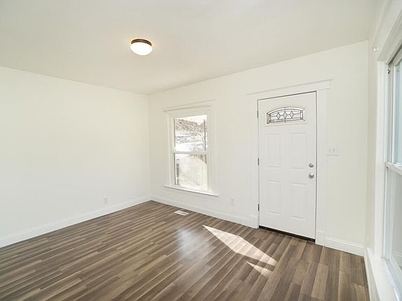 Remodeled two bedroom one bath home with open concept kitchen, laminate floors throughout, and remodeled full bath. Home also features newer HVAC and roof as well as a full basement with walkout to backyard. You will love the off street parking, front porch, and convenient location.