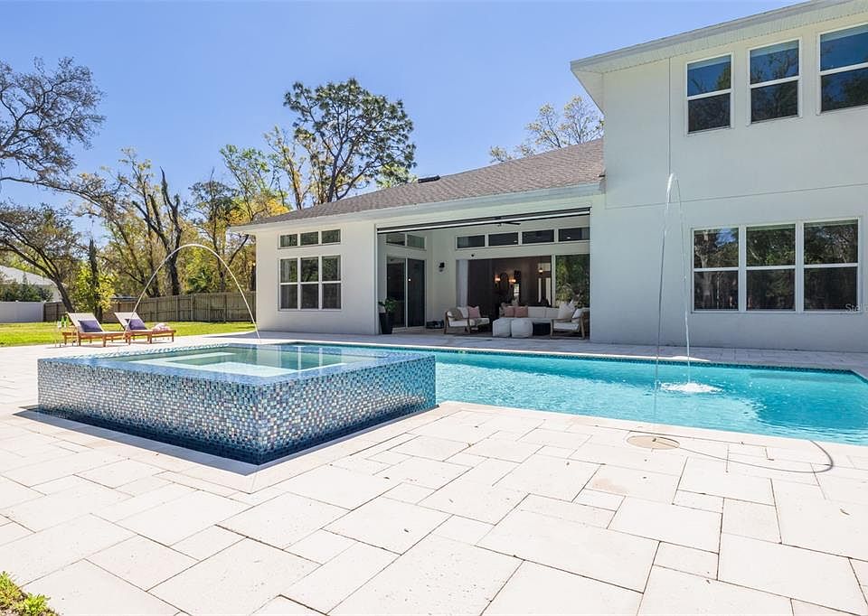 Fall in love with this dream home that has it all. Tucked away on a serene 1.55-acre lot, this stunning 5-bedroom plus den/office and bonus room home offers the ideal balance of peaceful living and modern convenience. From the moment you pull into the upgraded driveway, designed to easily support your RV or heavy vehicles, you're greeted by the inviting charm of 2216 Clement Rd. Step inside to find a welcoming foyer beautifully accented with oak floors and custom wood wall molding. To your left, discover a thoughtfully designed office featuring crown molding, tinted glass for privacy, and abundant natural light—perfect as your workspace, a cozy den, or even a 6th bedroom. Just beyond the foyer, you'll find a private two-bedroom alcove complete with accent wallpaper, custom built-out closets, and a shared bathroom, providing an ideal space for family or guests seeking their own retreat. The heart of this home opens seamlessly to the outdoors. Large sliding doors fully retract, revealing a luxurious, resort-style heated saltwater pool with a raised perimeter overflow spa featuring soothing jets and dual main drains. Enjoy premium upgrades including hand-formed steps in the shallow end, a comfortable 5-foot bench in the deep end, two laminar deck jets, artistic paver coping and decking, Pentair LED color lights, and gas heater. Effortless maintenance is ensured with automated floor jet cleaners, dual automatic skimmers, and an automatic overflow valve. A retractable screen allows you to comfortably enjoy Florida’s beautiful weather year-round, making evenings around the fire pit even more inviting. Attention to detail defines every corner of this property. Automatic blinds, custom drapery, and electric shades complement a state-of-the-art smart lighting system, adjustable to any color from your smartphone. The gourmet kitchen impresses with undercabinet lighting, upgraded quartz countertops, and backsplash, while the elegant dining room is illuminated by a striking custom chandelier. Retreat at day's end to peaceful bedrooms, each thoughtfully enhanced with fully built-out closets and upgraded carpet padding. Convenience is at your fingertips with Nest Thermostats, Nest Security Cameras, and a Nest Doorbell, all controlled through an intuitive smart-home app. Additional highlights include a propane tank, sprinkler system, oversized GE washer and dryer, and tinted front door glass for added privacy. Nearly $190,000 in premium upgrades enhance the quality and enjoyment of this home, including the exceptional pool area, premium fencing, extensive tree removal, new sod, window treatments, customized closets and lighting, retractable outdoor screen, and automated security and lighting systems. A spacious 3-car garage offers ample storage and convenience. Enjoy remarkable privacy on your expansive lot, surrounded by lush greenery offering tranquility rarely found so close to the city. With plenty of space to add future amenities like a guest house, garden, or recreational area, the possibilities are endless. Located just 16 minutes from downtown Tampa, easily accessible via I-75, and surrounded by exciting new developments, this property blends quiet living with city accessibility. With no HOA, restrictions, or CDD fees, not in a flood zone, this home invites you to experience luxury, and endless possibilities. All furniture is also available for purchase, reach out to the realtor if anything catches your eye. Welcome home.