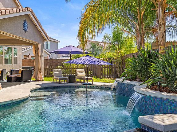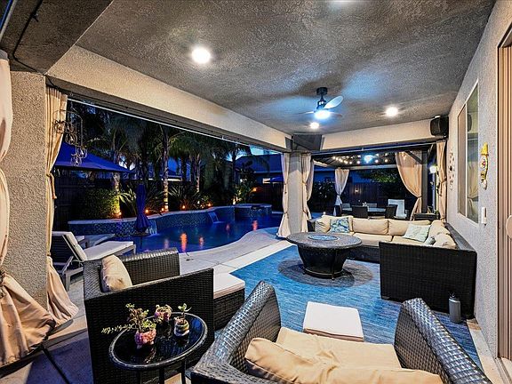 Blending elegance with modern comfort, this 3,877 SF home has 5 bedrooms, 5 bathrooms, and exceptional living spaces with LVP flooring. A private ADU with full kitchen, laundry, garage and separate entrance is great for extended family, guests or rental income. The open-concept design showcases a chef's kitchen with professional KitchenAid stainless steel appliances, double oven, granite counters, ample cabinets, a large island and pantry closet. The primary suite offers a soaking tub, and dual-head walk-in shower and very spacious closet. A versatile loft adds flexibility, while the tropical backyard includes covered patios, gardens, lush landscaping, and a heated saltwater pool and spa with waterfalls. Additional highlights include smart home features, security cameras, and RV/boat parking potential. With 20+ parks, trails, schools, dining, and shopping nearby, this home combines luxury with lifestyle.