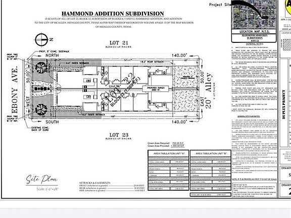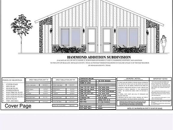 Great central location for duplex lot that has been approved and permitted to start construction in the city of McAllen! Plans are approved for a 2-unit, 3 bedrooms, 2 bath, 1 car garage duplex. Live in one and rent the other, lots of possibilities to generate income.