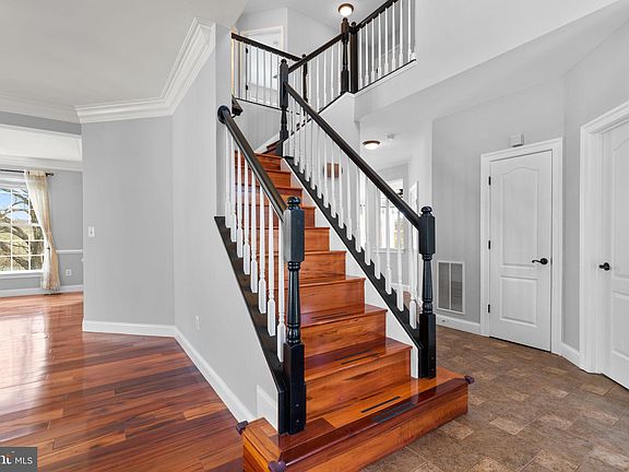 Nestled on a quiet cul-de-sac in sought-after Hollifield Estates, this 3496 sqft stunning north-facing Colonial offers premium, fully paid-off solar panels providing 100% annual energy offset, while the garage is equipped with a 220V plug, making it EV-charging-ready. Step inside to discover Brazilian hardwood floors and fresh paint throughout, creating a warm and inviting atmosphere. The impressive two-story foyer leads to a well-appointed study with vaulted ceilings and French doors, perfect for a home office. Across the hall, a stylish powder room adds convenience. The open-concept layout flows seamlessly, connecting the living room to the elegant formal dining room, highlighted by chair rail detailing and a chic chandelier. The upgraded eat-in kitchen is a chef’s delight, featuring modern cabinetry—some with glass fronts—gorgeous granite countertops, stainless steel appliances, a tile backsplash, pendant lighting, a spacious island, and a sunlit breakfast room with exterior access. The open and airy family room offers the perfect space to entertain, complete with south-facing windows and a cozy gas fireplace. Upstairs, the expansive owner’s suite boasts a vaulted ceiling, a walk-in closet, and a luxurious en suite bath with dual sinks and a large corner soaking tub. The additional bedrooms are generously sized, and the upper level also includes another full bath and a convenient laundry room. The finished basement is a standout feature, offering a home theater setup with a projector, screen, and speakers. A full bath, an additional bedroom, and walk-out access to the backyard complete this versatile space. Outside, the private, wooded backyard is perfect for relaxation and entertaining, featuring a spacious Trex® deck and lush tree-lined views for added privacy.