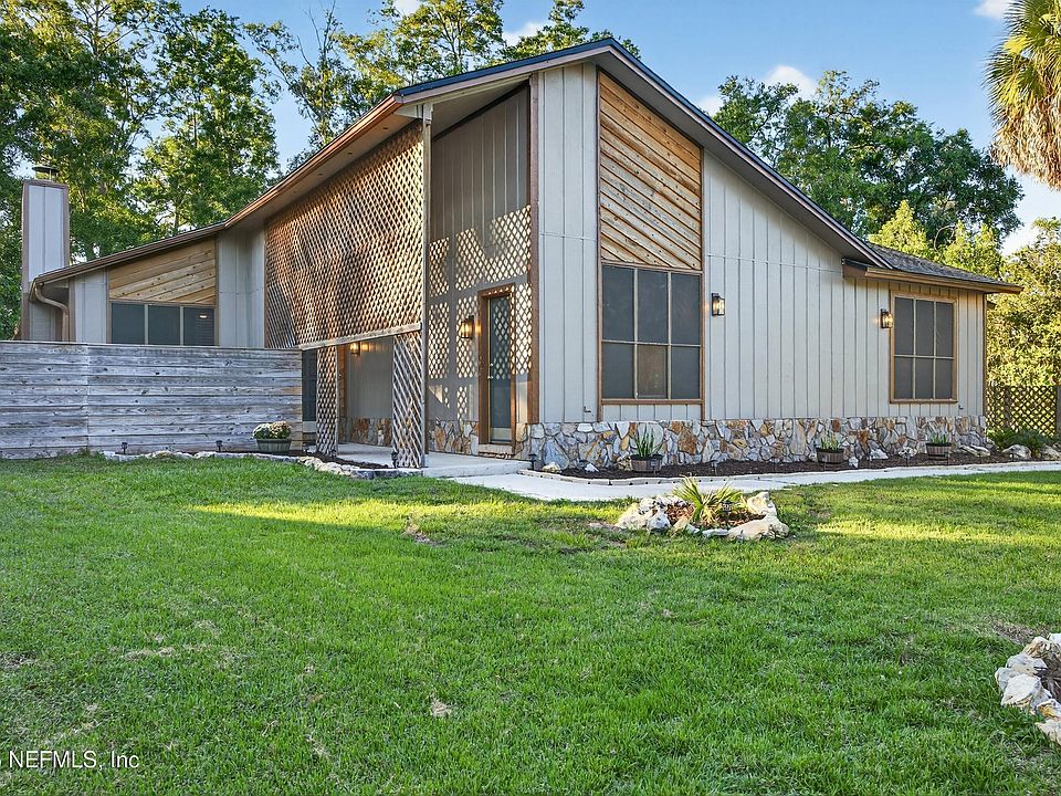 Completely Renovated Mid-Century Modern! 4-bedroom, 3-bathroom home offering over 2,000 square feet of stylish comfort in a desirable Orange Park neighborhood. Step inside to discover a stunning chef's kitchen featuring rich wood cabinetry, quartz countertops, and new stainless-steel appliances, designed for both everyday living and effortless entertaining. The home's thoughtful updates continue with remodeled bathrooms, designer vanities, modern lighting, and luxury flooring that flows seamlessly throughout. Freshly painted inside and out, every detail has been curated for a move-in-ready lifestyle. The spacious owner's suite is a private retreat, complete with a large walk-in closet, spa-inspired bathroom, jetted soaking tub, and separate enclosed shower. Blending sophistication with comfort, this home offers the perfect balance of modern design and timeless appeal - all set within one of Orange Park's most sought-after areas.