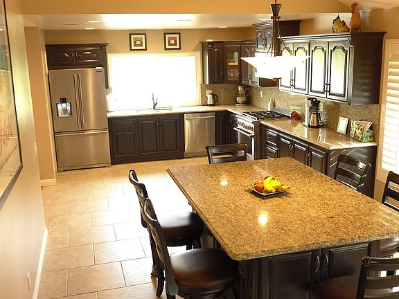 Welcome home! This gorgeous Single Story North Upland estate offers 4 bedrooms, 3 bathrooms, 2895 ft.² of living space located on .48 acres with a swimming pool and 3-car garage! With award-winning schools this area of Upland is highly coveted! Upon entering the home you will immediately be impressed with the open floor plan featuring a vaulted ceiling in the main living area and brick hearth fireplace. The home offers upgraded lighting and plantation shutters throughout. The large kitchen/dining room features beautiful granite countertops coupled with stainless steel appliances and a large built in granite dining island with storage! The adjacent family room offers hardwood flooring, a wet bar and access to the backyard via a large sliding glass door. The master bedroom is oversized and also offers a floor to ceiling brick hearth fireplace and private bathroom, The large backyard has a swimming pool with diving board and built-in spa. The mature vegetation of the backyard makes it completely private and lush! There is also a built-in fire pit and RV parking!!