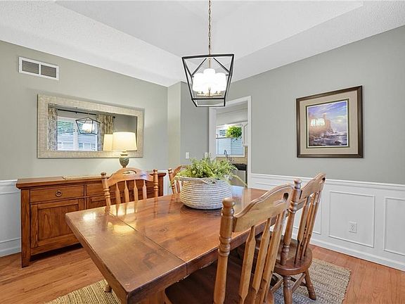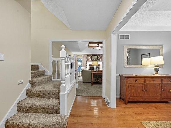This 3-bedroom, 2.1-bathroom home on a cul-de-sac offers spacious living with a large lot and plenty of charm. Inside you’ll find a functional floor plan that includes a living room with a brick fireplace, a dining area with wood flooring, and a generous kitchen with eat-in space and tile flooring that opens to the backyard. The primary suite features double closets and its own private bath, while two additional bedrooms share a full hall bath, and the main-floor laundry adds everyday convenience. Outdoors, the home includes a stamped concrete patio, firepit area, mature trees, and an adorable shed with electricity that can serve a variety of uses. With thoughtful details throughout, this property provides comfortable living and versatile spaces both inside and out.
