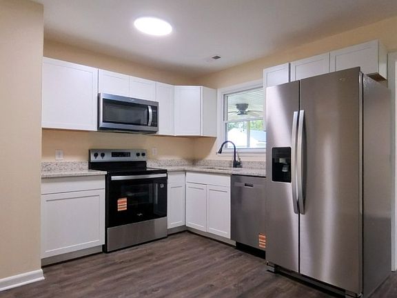 The kitchen shines with granite countertops, new cabinets, and stainless steel appliances, offering plenty of space for a large eat-in area that could easily serve as your dining room. The updated bathroom features a new tub, vanity, and toilet, making it feel completely brand new.