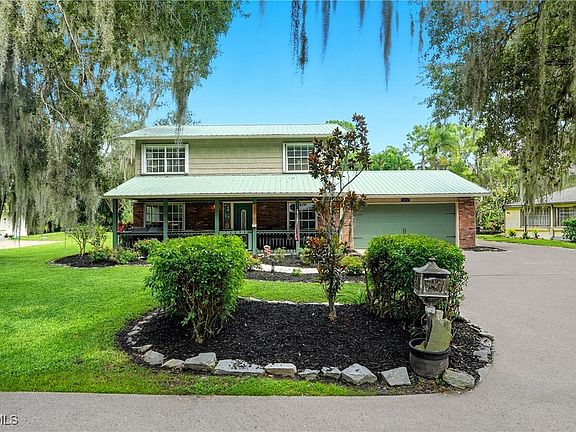 Buyer Incentive: Up to $15,000 toward closing costs with an accepted offer—ask for terms. Plus, a 1-Year AHS ShieldComplete® Home Warranty for added peace of mind. Tucked along a private, tree-canopied lane off Old Olga Road, this two-story home sits on a 1/3-acre lot framed by mature oaks—combining rustic charm with modern updates and an easy riverside lifestyle. The exterior features a durable metal roof, classic brick façade with vinyl on the second floor, and accordion shutters. An extended concrete driveway with 30-amp RV hookup offers generous parking for guests, toys, or your RV. Inside, you’ll love the new tile flooring throughout (no carpet), a renovated kitchen, an updated primary bath, and fresh interior paint that brightens every room. Thoughtful, warm details make the spacious layout feel instantly welcoming. Life by the water is effortless here: enjoy deeded access to a private boat ramp and dock with Gulf access—a rare and valuable amenity. Sip morning coffee on the charming front patio overlooking the Caloosahatchee, then wind down by the riverside firepit as boats glide past. An oversized two-car garage adds practical storage and hobby space, while the deep lot and serene setting elevate the sense of privacy. This property blends country charm, modern comfort, and true waterfront convenience—come see why it stands out!