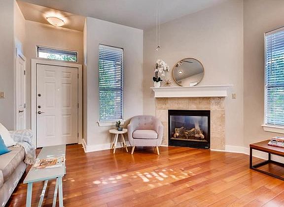 Updated condo in an intimate gated community w/ POOL, just steps away from eateries, shops and bars. New floors, designer paint, totally move in ready. Light-filled unit with an open floorplan, high ceilings, upgraded finishes and parking. 2 large bedrooms w/ walk-in closets, large family room w/ fireplace + office/sun room. HOA $ covers pool and exterior maintenance, water, trash, sewer, and general liability insurance. MUST SEE!