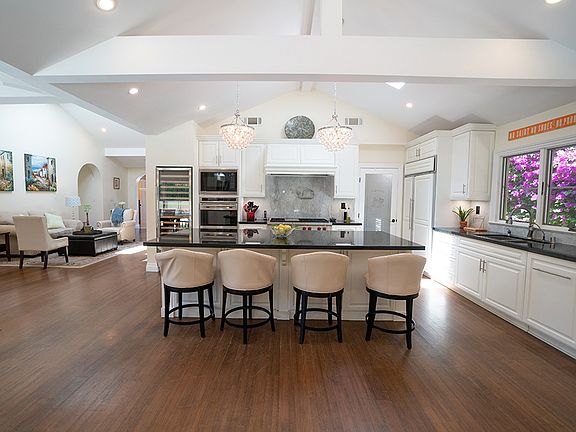 Entertainers dream in Monte Malaga on one of the best QUEEN'S NECKLACE VIEW streets. This one-level 4 bedroom, 3.5 bathroom home features a Venetian plaster foyer that leads to a living room with high vaulted ceilings, fireplace and marble wet bar with u-line refrigerator and beer taps. Dining room leads out to pool and additional outside eating area. First gourmet kitchen inside with sub-zero built-in refrigerator, all Wolf appliances with 6 range stove with French griddle, convection oven, warming drawer and microwave, as well as a large Vinotemp refrigerator and a large center island. Carrera marble backsplash and stone countertops. All built-ins custom made in white wood. Family room with built-ins and 70" TV leads out to second outdoor kitchen with all DCS appliances, BBQ, heaters, range stove,also with Green egg smoker and refrigerators. Private backyard with outdoor living room sits next to a professional speed putting green and large salt-water swimming pool. Side yard has planter boxes to grow veggies, herbs and flowers, as well as full grown lemon tree . Master bedroom has dual sinks with shower system and walk in closet. Home has bamboo wood throughout entire house. Direct access to the 2 car garage. Home has in-ground trampoline, leased solar panels, central vac system, wired for sound with 4 zones, A/C with 2 zones, Honeywell 4 camera local security cameras, private laundry room, Anderson casement windows and doors, garage wired for Tesla electric vehicle.