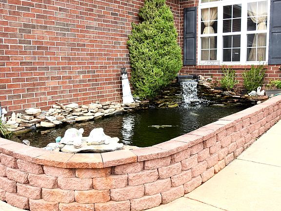 4 bed 2 bath all brick ranch style home with many unexpected additional features. Garage has been converted into a game room. The home has a custom built koi pond 16x10 at the front entrance, You keep it all except for the koi fish. Common areas are hardwood floors, 3 bedrooms have new carpet with walk in closets. Faux blinds will remain along with window treatments. Owners suite features hardwood floor, trey ceiling with tile floor on-suite, large owners walk in closet, garden tub. Greatroom and formal dinning have 10 foot ceilings. Kitchen features electric range, vented microwave, stainless double sink with garbage disposal, formica countertops, dishwasher, pantry. 10x9 Eat in kitchen. Utility room 9x6 features tile floors, utility sink and cabinets, washer/dryer hookups. Backyard patio, the yard has been seeded. spectacular backyard brick garden wall with many levels to view. Plant different levels of plants. At the very top there are sitting areas to view the sky, stars and just relax. There is an 16x9 pet built shed (very unique) several pet doors and food treys in the backyard area. Front water sprinklers and lots of side landscaping. Home is vacant.