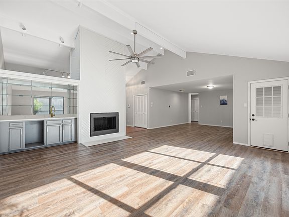 VA ASSUMABLE LOAN! 3.575% interest rate! BACK ON THE MARKET! BUYERS CHANGED THEIR MOVING PLANS, IT WAS NOT DUE TO THE HOUSE! Welcome to a home that blends comfort, style & functionality in every detail. With six doors opening to two private patio spaces, this property makes it easy to enjoy seamless indoor-outdoor living. Step inside to find a warm & inviting layout designed for both relaxation & entertaining. The family room impresses with vaulted ceilings, a wood-burning fireplace & wet bar—perfect for gatherings. The front living room with built-in shelving adds charm & versatility, while the formal dining area provides plenty of space for memorable meals. The kitchen is thoughtfully appointed with quartz countertops, stainless steel appliances, deep sink, modern finishes & a connected breakfast nook. Tile flooring in the kitchen, entry & breakfast area combines beautifully with LVP throughout the main living spaces, while the primary suite enjoys cozy carpet underfoot.