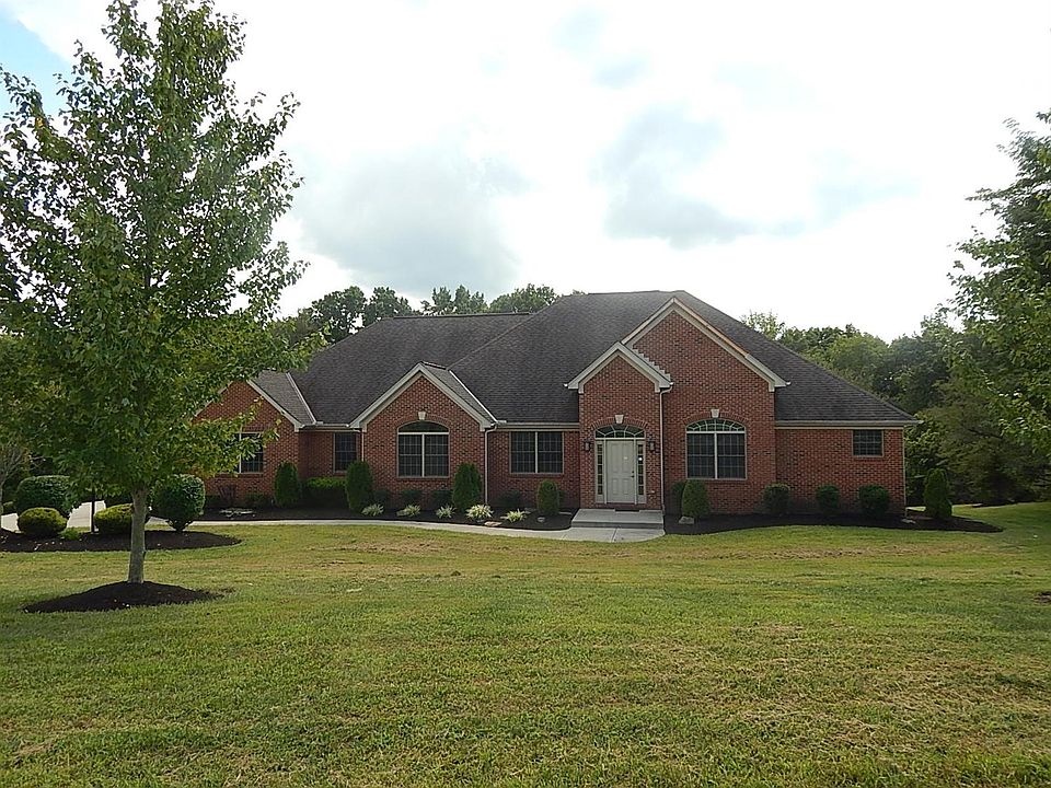 Gorgeous custom brick Ranch, 3 car garage, finished basement w/ walkout, upper balcony off Master Ste & Breakfast bay, private & wooded 1 acre yard + Arched windows, french doors, Gas FP, huge Island' kitchen with dble ovens, wine cooler & desk area, deluxe Master Suite, deep baseboards, boxed columns, professionally finished LL & more! Selling as is, no warranties, buyer to verify all information