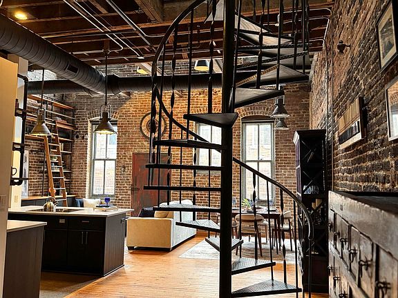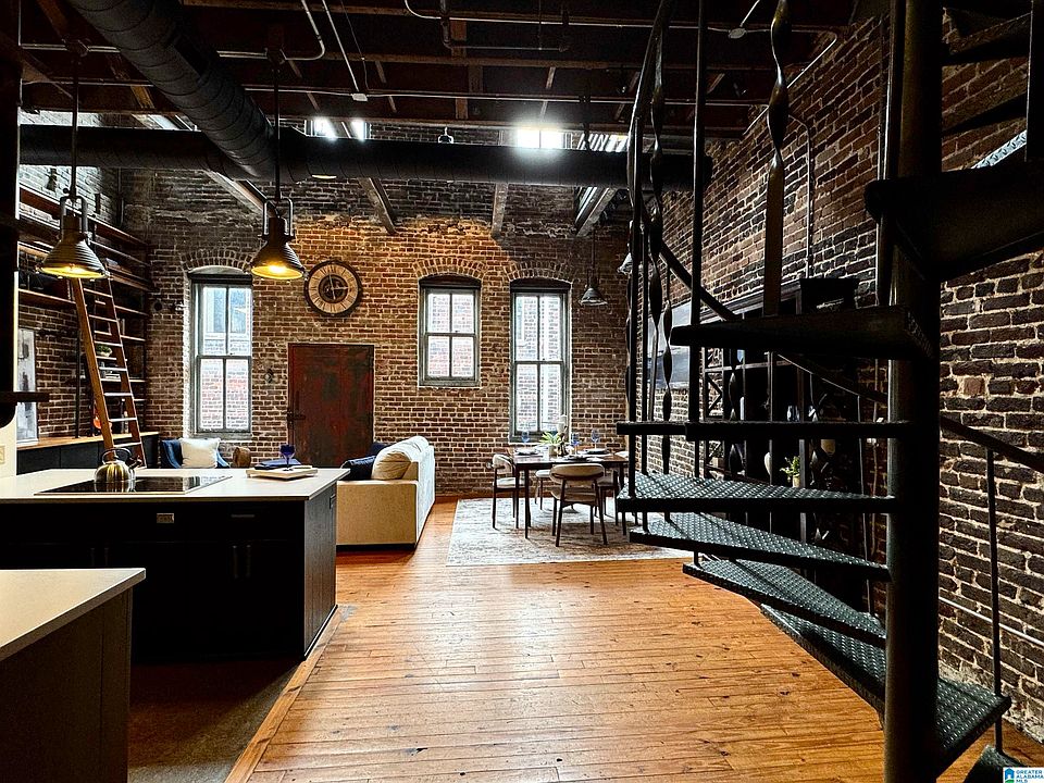 One-of-a-kind 2 bed, 2 bath loft in the historic Rhodes Carroll Building on 2nd Ave N. Soaring 2-story windows flood the space with natural light. Original hardwoods, exposed brick, custom LED lighting, Sub-Zero/Wolf appliances, and brand new carpet in bedrooms. Both bedrooms have custom closets. Once an elevator shaft, now a dramatic spiral staircase with original pulley system as a showpiece. Upstairs office/study, jetted soaking tub, and two separate entrances (2nd & 3rd floor). Rooftop patio with skyline views. Includes 2 reserved garage parking spots. Steps from El Barrio, East West, Adios, The Essential, UAB, BJCC, and Top Golf. Live bold in Birmingham.
