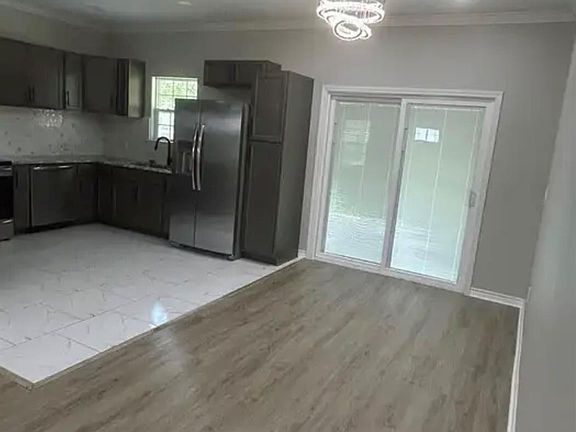 Stunning New Construction Home Built in 2023! Welcome to this beautifully designed 3-bedroom, 2-bathroom home featuring modern elegance and thoughtful details throughout. As you step inside, you're greeted by a grand entrance adorned with a striking chandelier, setting the tone for the rest of the home. The open-concept layout boasts a blend of stylish tile and warm wood flooring, creating a perfect balance of comfort and sophistication. The chef-inspired kitchen flows seamlessly into the spacious living and dining areas — ideal for entertaining. Retreat to the luxurious master suite, complete with dual sinks, a relaxing soaker tub, a walk-in shower, and plenty of storage space. Additional highlights include a 2-car garage, under-eave lighting that adds nighttime charm, and a large backyard perfect for gatherings or future customization. This home is move-in ready and truly a must-see — don't miss out on this exceptional opportunity!