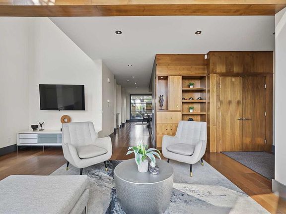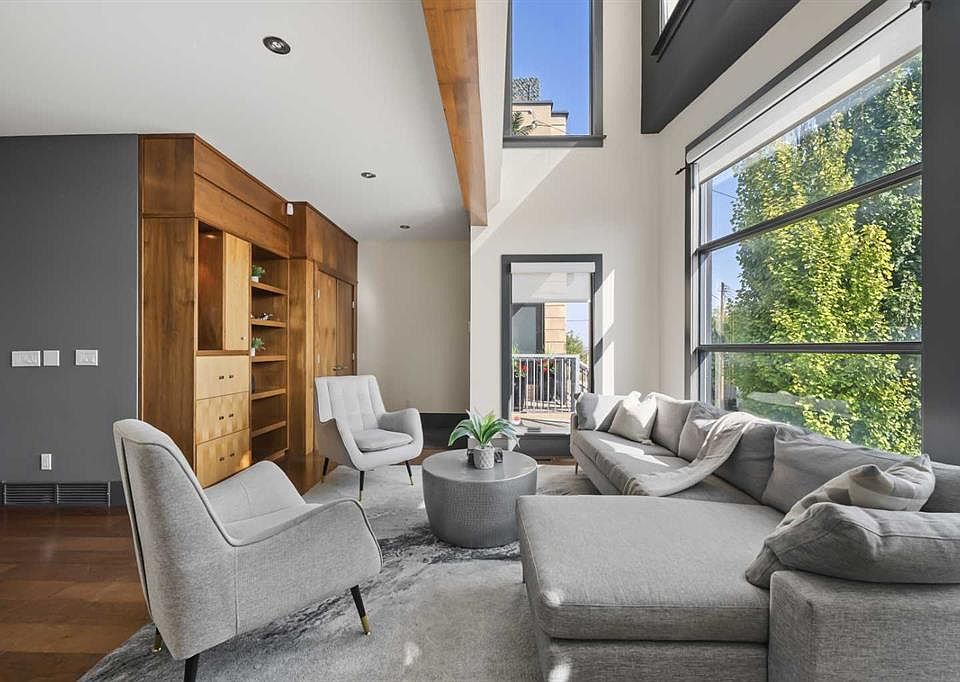 Nestled in the prestigious inner-city enclave of Bankview, this exceptional nearly 3,000 sqft architectural gem is a masterful blend of West Coast sophistication and timeless elegance with breathtaking views of the City Skyline from the Master Bedroom! As an established Airbnb property all furniture and furnishings are included, this property allows you to seamlessly take over the reins and continue reaping the rewards of this venture. Exquisite walnut millwork, soaring ceilings adorned with exposed beams, and expansive walls of glass frame captivating skyline views while flooding the home with natural light. The gourmet kitchen is a true showpiece, featuring premium stainless-steel appliances, a professional-grade gas range, an oversized quartz island with breakfast bar, and a seamless connection to the refined dining area—perfect for hosting in style. Beyond, your private outdoor sanctuary awaits, complete with a pergola-covered lounge, hot tub ($12k value and was craned into the backyard!), and lush mature landscaping, offering the ultimate in alfresco luxury. The second level showcases a dramatic vaulted-ceiling flex space, two generously appointed bedrooms, and a lavishly finished spa bath. Ascend to the top-floor primary suite, a serene retreat boasting an opulent ensuite, custom walk-in closet, and an exclusive terrace with unobstructed, glittering city views. The lower level offers yet another versatile living space with direct access to the double attached garage. A rare offering that transcends the ordinary, this residence is a statement in refined inner-city living for those who demand beauty, comfort, and distinction in equal measure. Book your private showing today!