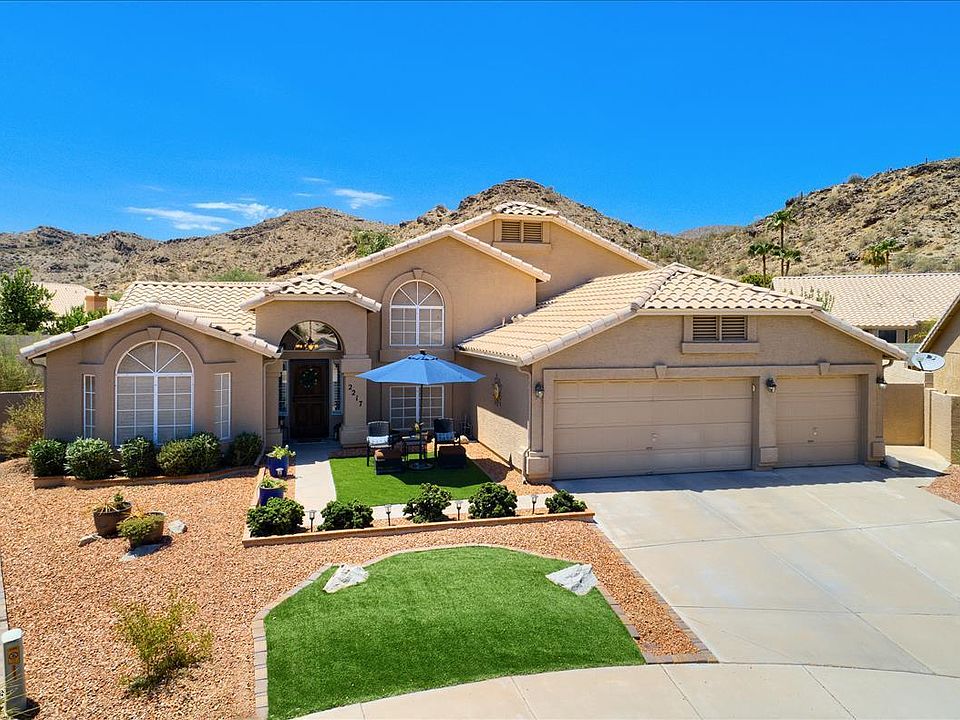 Look no further for that perfect Ahwatukee home nestled on a cul-de-sac. Quality 2x6 construction, located in hugely popular Mountain Park Ranch. This house has been well cared for & updates. Upgrades include newer kitchen cabinets w/ under mount lighting, granite counters, stainless steel appliances. 18 inch tile, plantation shutters. Huge family room! All bathrooms completely remodeled w/ newer cabinets, granite and tile showers. Large master suite w/ deck to overlook mountains, large bath w/ spa like tub, tiled walk-in shower and huge closet. Check out the backyard sports court & don't miss the 3 car garage W/ cabinets and a water softener. 3 Community pools, parks & tennis! HOME WARRANTY INCLUDED! Home is BACK ON THE MARKET, buyer unable to perform.