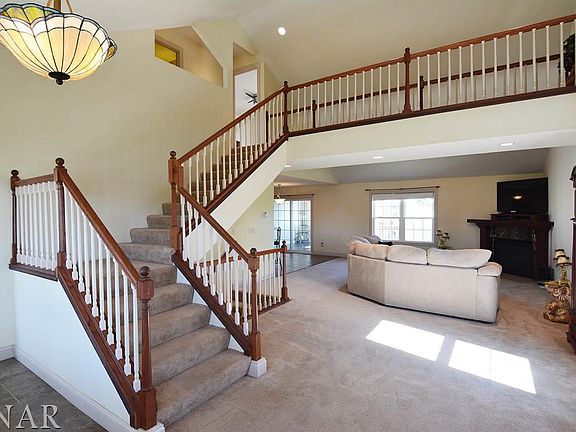 Open & Unique, this Heather Ridge gem has that "WOW" factor! This 1.5 story offers a 2-story entrance that opens to an extra large great room w/ 2nd floor catwalk above! Massive eat-in kitchen offers ample cherry stained cabinets, Corian counters & tile flooring! 3 season's room off the kitchen overlooks the beautiful fenced yard that backs to a creek & Constitution Trail! Spacious 1st floor master suite w/ cathedral ceiling, walk-in closet & full bath appointed w/ a jetted tub and separate shower! Finished WALK OUT BASEMENT boasts daylight windows, a sprawling wet bar, huge family room, full bath & large bedroom! Oversized 3 car garage! Not a "cookie cutter! Priced to sell!