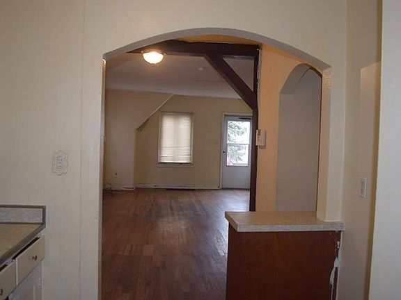 Cute house with a large rear enclosed porch. Full basement with 1 finished extra room. Galley kitchen that has a little dinette area, and opens into the living room. 1st floor bathroom. Private rear yard with a 1 car detached garage. Cute scenic stone walkway to the front of the house.