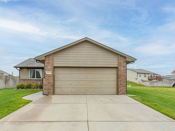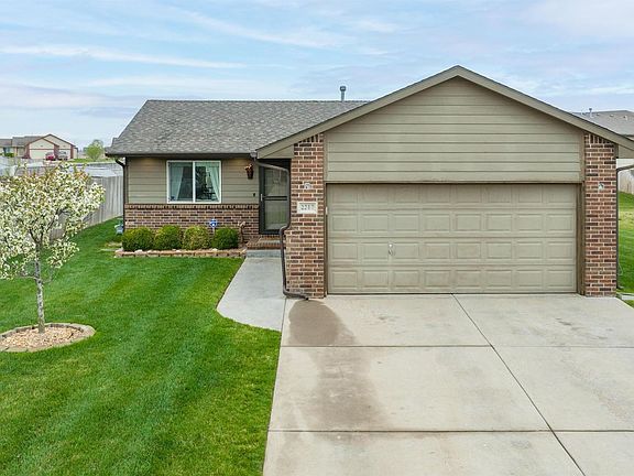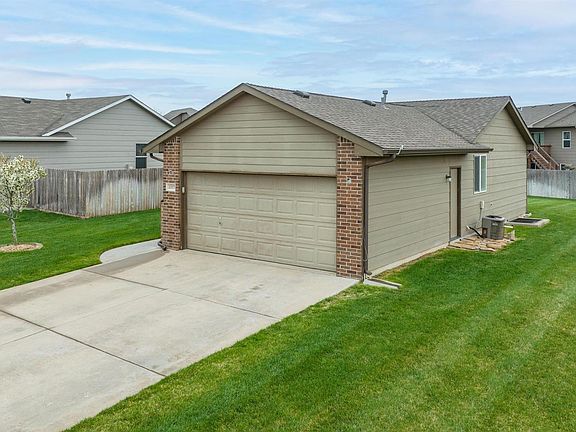 CHIC & AFFORDABLE 3 bedroom, 2 bath Ranch in Goddard school district is ready for a new Homeowner!! Notice the warm exterior colors with decorative coach lights on the 2 car attached garage with openers. Step inside to a spacious Living room with vaulted ceilings, newly painted gray walls and ceiling fan. Cute kitchen has a stove, microwave, disposal, dishwasher, eating bar and a separate dining area. 2 spacious bedrooms on the main level and full bath. Nice new basement finish has just been completed to include 1 bedroom, 1 full bath, 11X15 TV room, 11X20 Game room. Basement is wired for surround sound and in ceiling speakers. Party on the patio or around the fire pit in backyard. Pretty lawn is kept green with sprinkler system. Satellite dish. Good neighborhood. HOME IS PRICED TO SELL- MOVE-IN-READY!!! Agent is related to Seller.