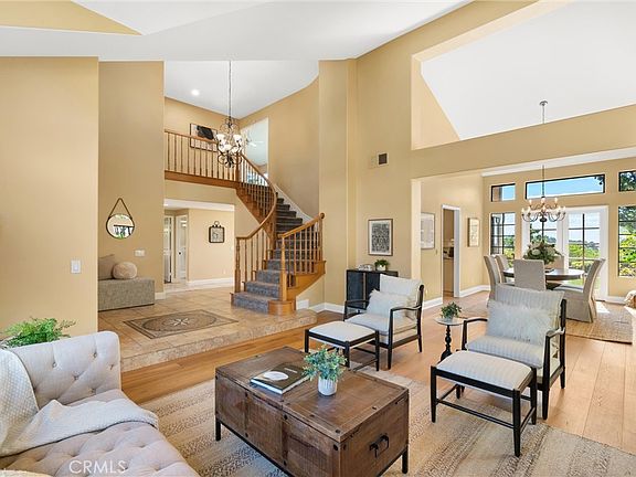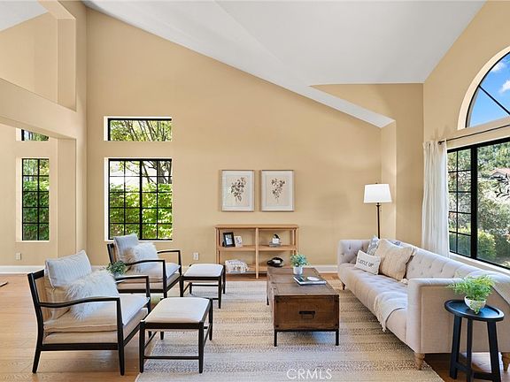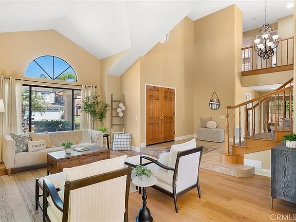 Views! Views! Views! Indulge in the epitome of luxury living with this captivating 5-bedroom, 3-bathroom residence in the coveted guard-gated community of Canyon Crest boasting unparalleled sunset vistas and front-row seats to breathtaking 4th of July and Labor Day fireworks displays. As you step inside, you are greeted by vaulted ceilings and a seamless fusion of hardwood flooring, elegant tile, and plush carpeting, lending an air of sophistication to every corner. The heart of the home, the kitchen, is a chef's dream, adorned with stainless steel appliances, a double oven, and a walk-in pantry, all complemented by the inviting ambiance of the spacious family room. Gather around the stone fireplace, nestled within built-in media cabinets, or savor a glass of wine from the ample storage in the bar area. Retreat to the primary suite, a sanctuary of serenity, complete with a cozy fireplace, balcony with stunning sunset views, dual walk-in closets, a rejuvenating soaking tub, a walk-in shower, and a dual vanity, offering the ultimate in comfort and convenience. Convenience meets versatility with a downstairs bedroom adjacent to a full bathroom, ideal for guests or as a private office space. The fifth bedroom could also be used as a bonus room, providing endless possibilities for customization to suit your lifestyle. Step outside to your own private oasis, where patio spaces beckon for alfresco entertaining, and lush grass invites children and pets to play. Embrace the enchanting evenings as you watch the sun dip below the horizon and fireworks illuminate the sky, transforming every night into a magical experience. The AC, ducting, double oven, and dishwasher were all replaced in 2022; a Telsa charging outlet was also added. As a resident of Canyon Crest, you will enjoy community social events, 3 pools & spa, 4 tennis courts, a playground with basketball, pickleball & handball courts, and a fitness center. In addition to being in walking distance to the Canyon Crest Clubhouse amenities, this residence is less than a mile from the beaches, boats, and summer concerts on Lake Mission Viejo. Plus, it is zoned for the award-winning schools of Capistrano Unified.