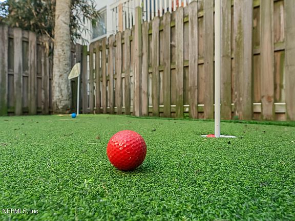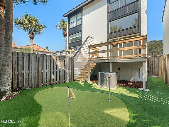Turnkey beach living just steps from the surf and sand. Conveniently located in South Jax Beach, this home offers the perfect coastal lifestyle. Spend your free time enjoying a low-maintenance property featuring an artificial turf putting green. The main level boasts a spacious family room with a fireplace, high ceilings that allow for plenty of natural light, and a new balcony overlooking the yard. The updated, open kitchen includes a breakfast room and a powder bath. Upstairs, the third floor features two bedrooms, each with its own bathroom. A one-car garage provides convenient parking. Situated near Whole Foods, shops, local bars, and restaurants, with easy access to JTB—and, of course, just steps from the beach!