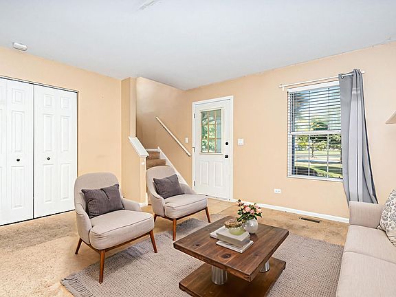 A STAND ALONE HOME IN PLAINFIELD AT THIS PRICE?! Enjoy the ease of maintenance-free living with a low monthly HOA that covers exterior maintenance, lawn care and snow removal with this two bedroom, 1.5 bath home - in popular Riverside Townes! There are great front yard views from the welcoming front porch, the kitchen, featuring an extra wall of cabinetry with a desk area, stainless steel appliances, quartz and backsplash overlooks the living room, and the second floor primary bedroom features a walk-in closet. Recent UPGRADES INCLUDE: new furnace (2023), GE washer-dryer combo (2023) on the second floor, updated kitchen with Whirlpool French door refrigerator (2022), Samsung gas range (2021), Caesarstone quartz countertops, Electrolux dishwasher, Kohler kitchen sink/faucet/sprayer & microwave (all 2023), new storm door (2022), bathroom faucets and shower head (2019), Nest thermostat, smoke and carbon monoxide detectors (2020). This home also has a two car attached garage and is very CONVENIENTLY-LOCATED near shopping, restaurants, I-55 and all that one of the fastest-growing towns in Illinois has to offer. Schedule your showing today!