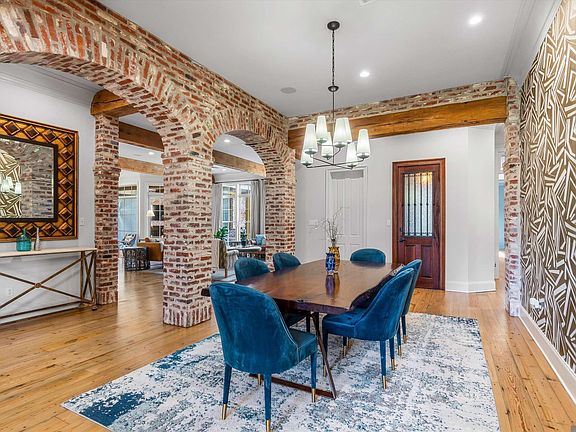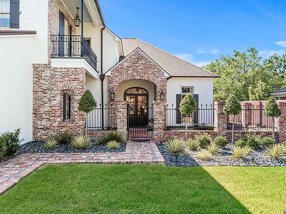 Step through a charming New Orleans–style brick courtyard into this beautiful custom-built home in the heart of Bocage. This immaculate two-story home features 4 spacious bedrooms, each with its own private bath, plus a double office and a 322 sq. ft. attached guest or mother-in-law suite overlooking the heated gunite pool. The open-concept living area includes exposed cypress beams, custom brick columns, and a formal dining area with a 900-bottle, temperature-controlled wine room featuring custom walnut fixtures. The chef’s kitchen offers large granite countertops, a quartz island, Thermador appliances, double ovens, and a 6-burner gas cooktop. The primary suite includes dual custom vanities, a soaking tub, double shower, and an oversized walk-in closet. A home office with two built-in workstations completes the first floor. Enjoy outdoor living in your private backyard oasis with a fully vented outdoor kitchen, cypress-beamed slate patio, gas/wood-burning brick fireplace, and custom Russell-built tiled gunite pool with hot tub and waterfall. Additional features include an oversized 3-car garage, whole-home generator, Savant/Apple smart home system, fresh paint, security system, automatic irrigation, and landscape lighting. Located on a quiet, established street with private gated walking access to Bocage Village and some of Baton Rouge’s best shopping and dining.