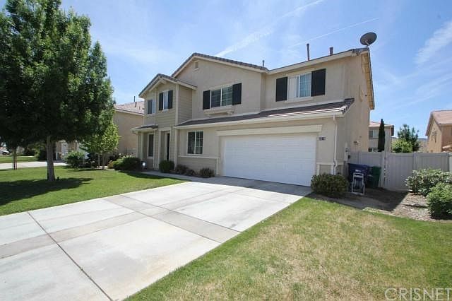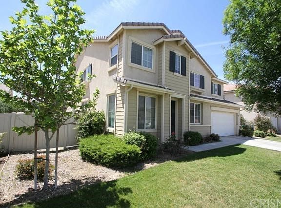 Spacious living room is light and bright and is open to a great bonus room. The fabulous family room has a nicely tiled fireplace. There is a dining area opened to the kitchen with sliders that not only lead to the back yard, but also provide lots of natural sun light. The remodeled kitchen includes dark wood cabinets, granite counters, a center island with breakfast bar and also a door to the laundry room. Head upstairs and see the huge loft for more sitting and entertaining space. The guest bedrooms are a good size and the guest bathrooms have an awesome attached spa-like bathroom. The back yard is nicely landscaped and surrounded by vinyl fencing. Best of all, the valleyâs best schools are in this neighborhood, also easy access to the Antelope Valley freeway.