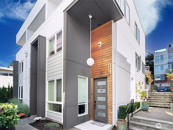 Welcome to this serene end-unit residence, crafted by Murray Franklin and boasting stunning views of Lake Union and the downtown skyline. The primary bedroom offers beautiful views of the scenery in the distance. Ideally situated in the sought-after Eastlake neighborhood, this home offers quick access to Downtown Seattle, the University of Washington, I-5, and Highway 520. It complemented by brand-new carpeting and fresh interior paint. The primary suite includes a walk-in closet for added convenience. A dedicated parking space is provided in the rear alley. Built by Berkshire Hathaway in 2017 and never before offered on the market, this well-maintained home is being sold "As Is."