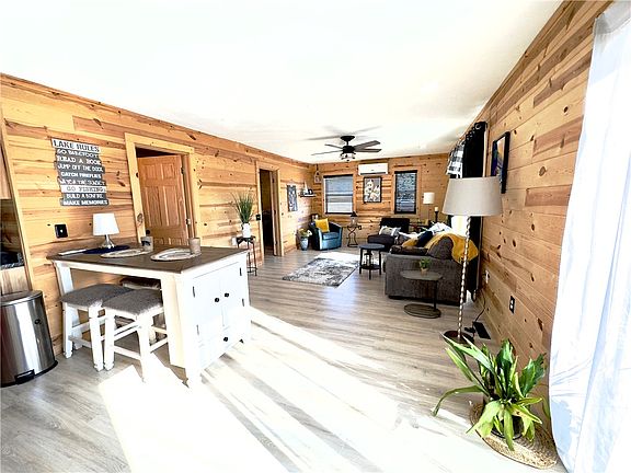 Nestled in a picturesque lakeside setting, this home offers a serene retreat where you can relax and unwind.The highlight of this home is the upper deck, with breathtaking views. This spacious outdoor area provides an ideal space for entertaining or simply enjoying the peaceful ambiance of the surroundings. Imagine when the 4th of July arrives, you'll have a front-row seat to the dazzling fireworks, creating a truly magical experience. Inside, the cabin-like atmosphere welcomes you with its inviting charm. Walls finished in knotty pine lend a rustic feel, perfect for lazy weekends.