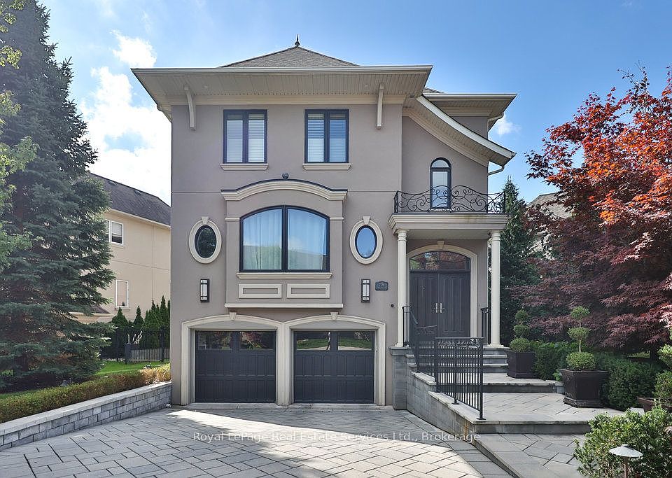 Set in the exclusive Woodhaven community backing onto greenspace and surrounded by the sprawling 16 mile creek ravine. Updated throughout by long time owner. Extensive improvement list available upon request. Herringbone interlock, stone walkway, professional landscaping, recently replaced windows (Frank by Ostaco) and double door entry provide welcoming first impressions. Hardwood, Godfrey Hirst broadloom, pot lighting, crown moulding & California shutters throughout. Stately dining room with contemporary chandelier opens to living room with archway opening. Bright living room with arched bay window, round accent windows, feature wall & contemporary light fixture. Kitchen features stainless steel appliances: Miele (stove top, range hood, B/I oven, B/I micro, dishwasher), Subzero (Fridge) & Perlick (wine & drink fridges). Kitchen also boasts island, granite counters & desirable sightlines into the family room. Adjacent convenient breakfast room overlooking backyard. Family room impresses with gas fireplace (custom mantle, granite surround), wall-to-wall built-in shelving & walkout to back deck. Back deck is an oasis with B/I hot tub, privacy screens and glass panels with remote roller blinds. Primary bedroom with double door entry, large walk-in closet and ensuite. 5 pc ensuite boasts double vanity, soaker tub & glass enclosed shower. 2 large additional bedrooms with generous closets (with organizers) and updated main bath with separate tub, glass enclosed shower and quartz counters. Convenient 2nd floor laundry. Bright basement with access to garage, mudroom, powder room, storage room and large rec room featuring above grade windows with California shutters, B/I entertainment unit & B/I speakers. Property is adorned with mature gardens, trees, landscape lighting & sprinkler system. Easy access to hospital, shopping, golf, restaurants and steps to the 16 Mile Creek trails. A stunning home in an exclusive enclave! Full improvement list available.