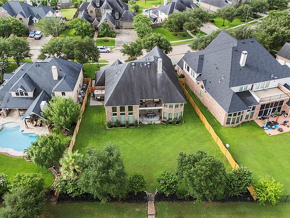 Welcome to 2218 Monarch Terrace, an exceptional Perry Home on an oversized cul-de-sac lot with serene Nature Reserve views in Firethorne. This beautifully designed home offers 5 spacious bedrooms, 4.5 baths, and surround sound throughout, enhanced by abundant natural light. Enjoy a remarkable 4-car tandem garage with workstation, cabinets, countertop, sink, and under-cabinet lighting. The grand living room, elegant dining with chandelier, and family room with floor-to-ceiling windows around a fireplace are perfect for gatherings. The open kitchen features custom cabinets, double convection ovens, oversized granite island, and a breakfast area. Highlights include a sunroom with 2-story windows, private study, utility, media, and large game room with balcony. Newly fenced backyard (2025) features vibrant landscaping plus a gate to 12 acres of nature trails and lakes. Convenient to I-10 and excellent shopping. Zoned to top Katy ISD schools!