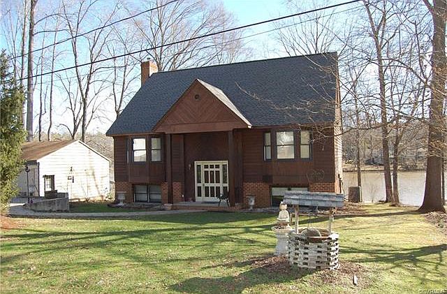 Eastern Powhatan-Welcome Home to Lake Shawnee- Waterfront 3 Bedroom, 2 ½ Bath Home with Basement on ½ Acre with 2 Car Garage. This Home offers a split floor plan with two finished levels and one unfinished with electric and rough-in bath. The Main Living area has a Large Family Room (27X13) that is open to Dining Room area leading into the Kitchen. Kitchen offers all Stainless Steel Appliances, Built-in Pantry, and Pine Cabinets. It includes a Master Suite with Dual Closets, Full Bath, and Dressing Area opening onto the Large Deck overlooking the Lake. The Basement is also finished with a Rec Room/Den with Brick Hearth and Wood Stove, two additional Bedrooms with Full Bath and Laundry. The Exterior Boost ½ Acre Lot with Dock to Enjoy Fishing! Don't Miss this Home on the Lake! Community offers 3 Lakes and BEACH WITH PLAY AREA! Motivated Sellers Bring All Offers! Minutes to Midlothian, Shopping, Grocery Stores, and Interstates! 100% USDA Rural Housing Financing Available