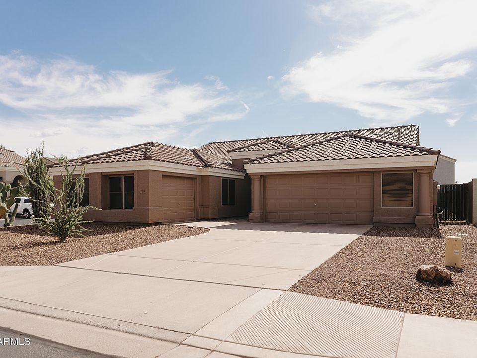 Beautiful Single Level with 3 and a half car Garage! 3 Bedroom split floor plan Plus Office off entry! So many improvements; New AC 2017, 2018 New AC and has been insulted in 3rd Garage, New water softener, Hardwood flooring and ceramic tile installed 2019, New 50 gal water heater(gas) 2021, R/O filtered water installed 2022, brand new roof (concrete tiles) installed 2023. Corian counters in kitchen, upgraded stainless appliances are included (refrigerator, dishwasher, stove/microwave) also washer and dryer included. Golf Course walking distance, great access to restaurants & freeway.