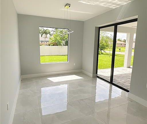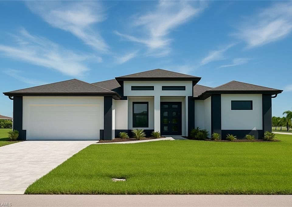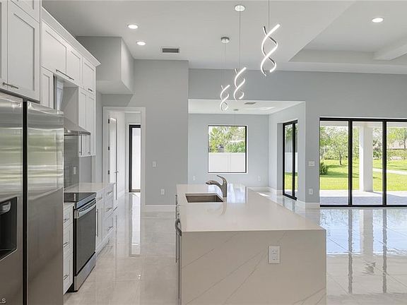 Modern Elegance Meets Investment Opportunity in Cape Coral Step into refined Florida living with this newly built masterpiece, designed to impress both homeowners and investors alike. Featuring 3 bedrooms plus a den, 2 luxurious bathrooms, and a 2-car garage, this 2,131 sq. ft. home is a statement of comfort and modern design. Natural light floods through expansive glass sliders, gliding across the polished porcelain tile that unites every room in seamless sophistication. The chef-inspired kitchen showcases quartz countertops, a waterfall island, and stainless steel appliances, setting the stage for gatherings both elegant and effortless. The primary suite offers a private escape with lanai access, dual walk-in closets, and a spa-like bathroom complete with dual vanities, a freestanding tub, and a glass-enclosed shower. Built for strength and serenity, this home includes hurricane-impact windows and doors, ensuring both peace of mind and enduring value.