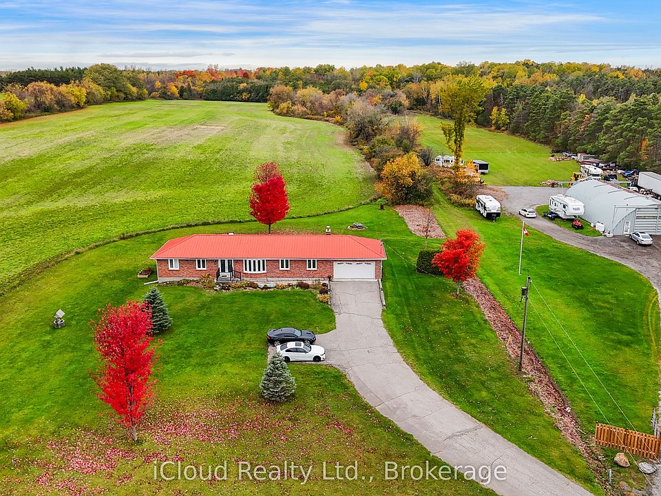 Beautifully updated 4-bedroom brick bungalow on 50.90 acres (House + Heated Quonset Hut + Farmland) in East Gwillimbury. Set well back from the road for privacy and scenic views. Features hardwood floors throughout, a modern kitchen with granite counters, and a cozy family room with a wood-burning fireplace and walkout to the backyard. The elegant living room offers a bay window and crown mouldings. The primary bedroom includes a 4-piece ensuite, while the fourth bedroom can serve as an office or den. The partially finished basement provides an extra bedroom and generous storage space. The Quonset hut (50 ft x 100 ft) with a washroom is ideal for a home business, workshop, or storage. Enjoy peaceful rural living just minutes from town amenities.