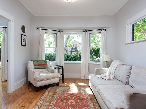 Secluded and private retreat in the heart of a vibrant community. Turn of the century vintage details include wainscoting with plate rails, pocket doors to living and dining rooms, corner fireplace, coved ceilings, and rustic fir floors. With the old world charm, modern amenities are appreciated, including a new roof, forced air heating, new water heater, double paned windows, newer plumbing, and upgraded electrical. The house has two delightful bedrooms, an extra bonus room, and a studio in the backyard. Tasteful bathroom remodel features hexagon marble tile floor, clawfoot tub, and subway tile wainscoting. Spacious kitchen with granite counters and custom cabinetry overlooks the gorgeous, sunny backyard and leads straight out to a large deck, ideal for dining al fresco. Backyard is ideal for the urban farmer, with mature fruit trees (olive, fig, avocado, apple, and plum), raised veggie beds (raspberries, blackberries, strawberries), an herb garden, and trellis draped with grape vines on both sides. Peaceful pond with koi fish and mature bamboo and trees provide the perfect oasis from the everyday busyness of life. A newly built detached studio has potential galore. When you aren't delighting in your home and garden, you are just steps away from the Berkeley Bowl and the 4th Street shopping district where cafes and eateries await you, plus transportation to San Francisco and UC Berkeley are just blocks away.