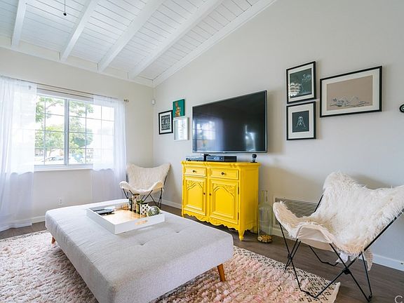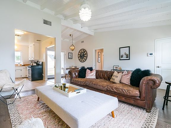 Los Altos 2 Bed, 1 Bath, 957 sqft single family on a HUGE 6,036 sqft lot. TURN KEY with tasteful updates throughout! Fantastic curb appeal greets you as you enter through the mint Dutch door into an open beam living room. Vaulted ceilings, fresh paint, and updated laminate floors bring you to the open dining area and kitchen. Updated hardware, fixtures, and a plethora of natural light shine through the kitchen and living space. The kitchen is tiled with updated stainless steel appliances. Overlooking the covered patio from the dining area, french doors guide you out to the spacious yard with room for tons of fun! The bathroom has been remodeled with fresh tile, new double sink vanity with Carrara marble countertop and updated fixtures. Both bedrooms have been freshly painted with updated carpet, new double door wardrobe with built in cabinets above, and finished with base molding.