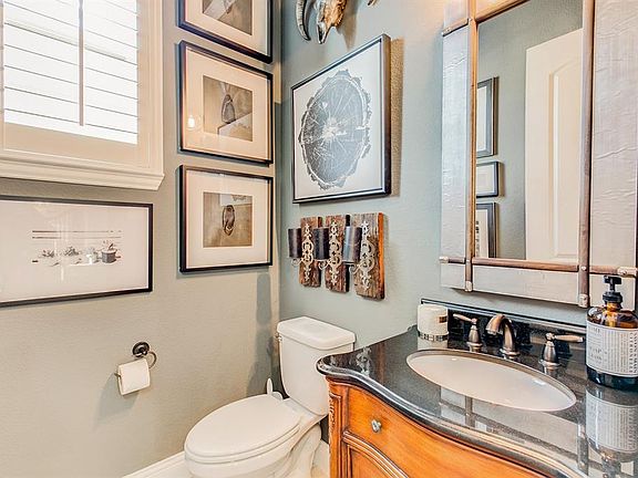 Incredible 4 Bedroom-3.5 Bath-3 Car Garage with Updates galore! Amazing lighting, fans, plantation shutters throughout, custom drapes, paint, & hand scraped hardwoods extended throughout the main floor. Open concept kitchen features large island breakfast bar, dbl ovens, gas range and an abundance of cabinets. Living room has floor to ceiling stone fireplace & gorgeous windows. Master bedroom & guest en-suite are on main level! 2 Bedrooms, a spacious game room & media room are upstairs. Built in desk for homework or crafts has plenty of storage. Outdoor living space has built-in grill, a spot for a Big Green Egg, TV and gas log fireplace.