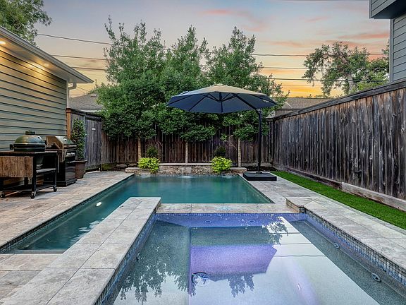Spectacular Heights home features 4/5 bedrooms-4 baths, pool + primary bedroom down. Fully fenced. Hardwood floors, stunning light fixtures and plantation shutters/window treatments. Gourmet kitchen offers granite counters, island, s/s appliances and walk-in & butler pantries. Family room with vaulted ceiling is the perfect spot to enjoy everyday living. Dining room is set for holiday gatherings. Front living room is an ideal space to enjoy quiet conversations. Large study is a true home office. Primary bedroom suite with tray ceiling and sitting area is well-appointed with a spa-like bath with double sinks, soaking tub, walk-in shower and 2 two walk-in closets. Climate controlled wine cellar can house 300+ bottles. Upstairs includes a secondary bedroom with en suite bathroom, 2 other secondary bedrooms, hallway bath, gameroom with wet bar + media room. Backyard oasis with pool/spa, pergola/deck. Two car oversized attached garage. Extra off-street front parking w/ automatic gate.