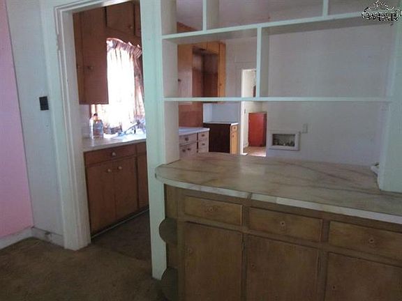 Attention Investors....this 2 b/r, 1 bath 1-1/2 story home includes large living/dining, kitchen with eating bar, separate utility room and has 2 car garage, fenced yard, storage building.