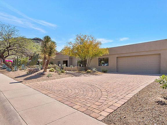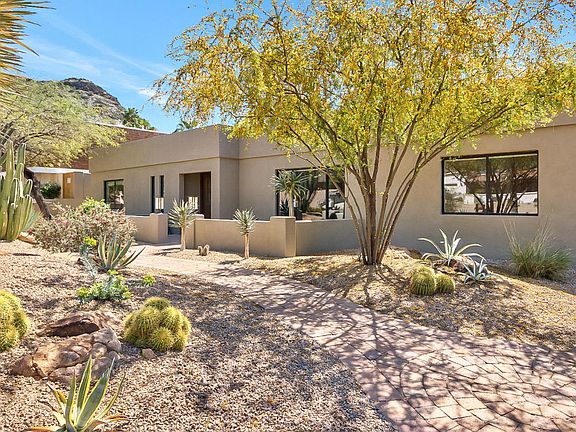 People will stop to admire the picture perfect curb appeal on this high pride of ownership property. No expense was spared when updating inside & out. Step into the home & see that walls have been opened & ceilings raised to reveal a great layout for entertaining and letting in the natural light and views of the mountains and resort style backyard. Gorgeous Travertine floors throughout & updated kitchen with light maple cabinets accented by black granite, stainless steel appliances and gas cook top. Master has his/her closets and soaking tub. 4 Bed/3 bath make it a great family floor plan with Madison Heights just around the corner. New Stucco, new front/back landscaping & artistically designed paver driveway. Windows and doors have been replaced with high efficiency throughout. Place yourself among the Million dollar homes that run up and down this highly desirable street and within walking distance to hike Piestewa Peak , enjoy the preserve, or easily drive to anywhere in the valley.