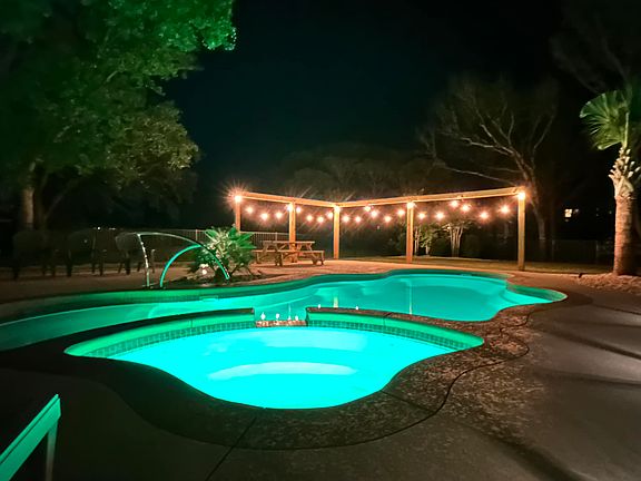 POOL: The deluxe heated pool with a built-in spa was installed in 2024. The pool surround is coated with a special sealant that keeps the concrete cool and slip-resistant. Cafe lights at night provide a magical tropical paradise experience!