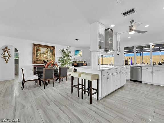 NEW LISTING & PRICED RIGHT! Searching for Direct Gulf Access w/easy commute to Downtown Ft Myers & the Beaches? Your Search is Over! Explore this Beautiful Waterfront Pool Home located in SE Cape Coral's Desirable "Everest Neighborhood" just Mins to the River from your Backyard! The Light & Airy Open Concept Boast almost 2000 Sq Ft of Living Space & Features 3 Beds, 2 Baths +Den. Beautifully Updated Interior w/Gorgeous Plank Tile Floors thru-out, Well Appointed Kitchen offers an Abundance of Cabinet & Storage Options, Quartz Countertops, SS Appliances & Huge Island Perfect for Entertaining Guest. Den would make an Excellent Home Gym, Office or Additional Guest Bedroom! Pocketing Sliders open to your Inviting Lanai & Pool Area. There's a Wonderful Patio on the Side Yard offering Privacy & Plenty of Sunshine to work on your Tan! Recent Updates include Newer Roof & AC (2021), Refinished Pool Interior w/New Brick Pavers, Updated Baths w/Tile & Glass Shower, Impact Windows, plus Beautiful Tropical Landscaping. Boaters will enjoy the 2min Ride to River & NO BRIDGES! Horton Park is just down the street, perfect for launching your Boat or Jet Skis. It just doesn't get any better than this!